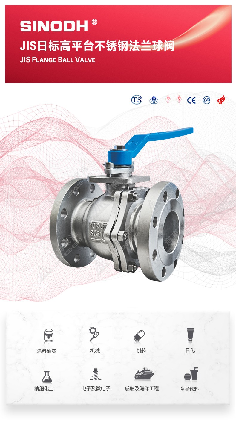 JIS日标高平台不锈钢法兰球阀,为kaiyun·开云(中国)官方网站自主研发生产本产品设计制造标准符合J1 SB2071标准,该产品的球体(密封件)是浮动的,在介质压力作用下,球体能产生-定的位移并紧压在出口端的密封面上,保证出口端密封。适用于水、溶剂、酸和天然气等一般工业介质,也适用于工况恶劣的介质,如氧气、过氧化氢、乙烯等介质。